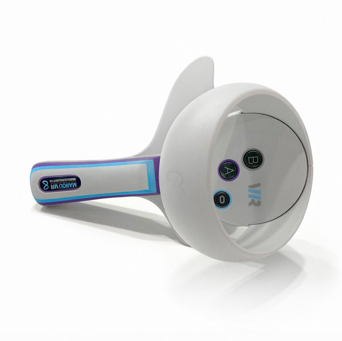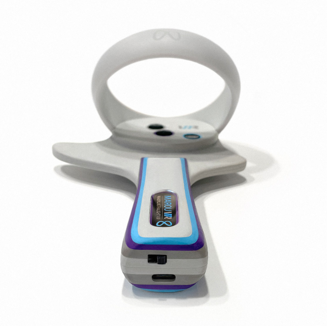 I thought I’d post some pictures of one of my Wasyl Ultralights with concave handle that I’ve done some work to. I sanded the base and painted it the same color as the Quest 2 LED ring. Then I added some little fillers here and there (Bondo) and sanded it again with super fine grit sandpaper. Painted it again and added a couple of more colors and also a handle-lens insert.